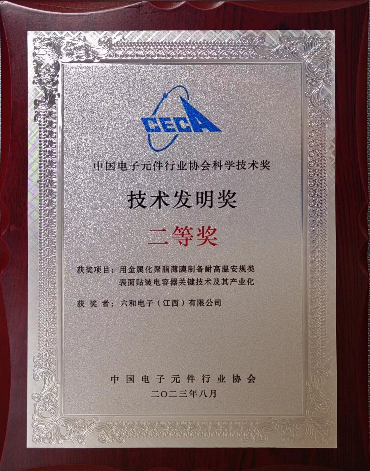 六和電子(江西)有限公司榮獲中國電子元件行業(yè)協(xié)會科學(xué)技術(shù)發(fā)明二等獎