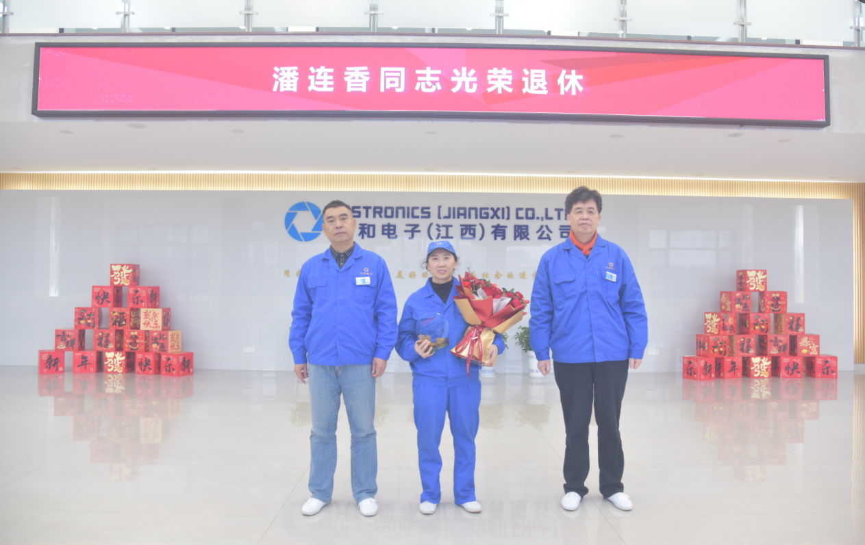 2025 年 1 月 25 日,六和電子董事長黃董和總經(jīng)理艾總,為在公司奉獻(xiàn)多年的潘連香舉行了一場溫馨而隆重的退休儀式,共同見證這一重要時刻,為其職業(yè)生涯畫上圓滿句號。